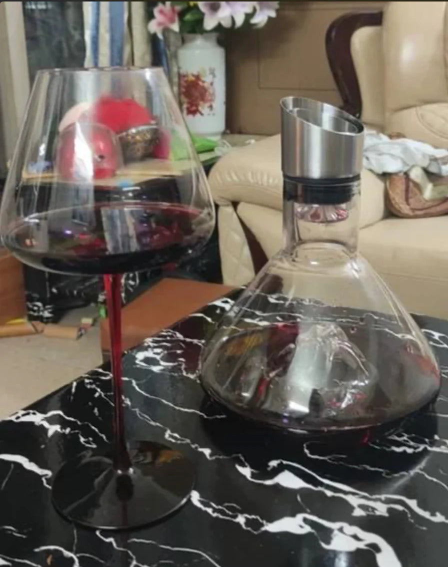 As you pour, the wine flows through the decanter, impressing your guests with its enhanced flavor and aroma.